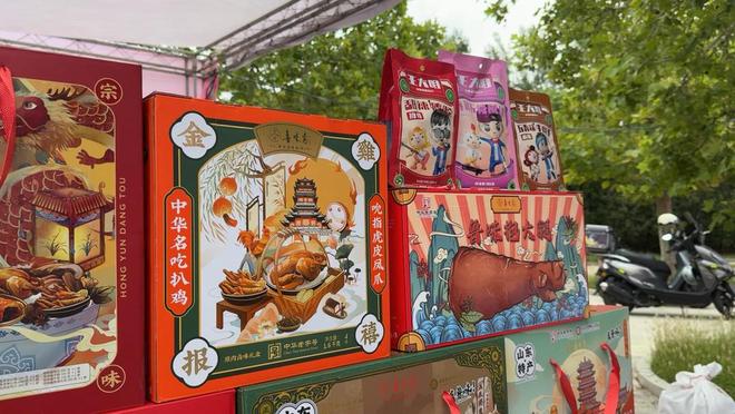 在美食节现场的“烟火齐鲁・食光嘉年山东特色美食展示区”,来自山东各地市的特色小吃、非遗美食以及老字号产品纷纷亮相,其中鲁味斋、超意兴、净香园、鸿熙居布袋鸡、德州扒鸡、永盛斋扒鸡等老字号展位前人潮涌动,成为焦点。这些老字号承载着齐鲁大地深厚的饮食文化底蕴,凭借独特的风味和精湛的制作工艺,深受消费者喜爱。