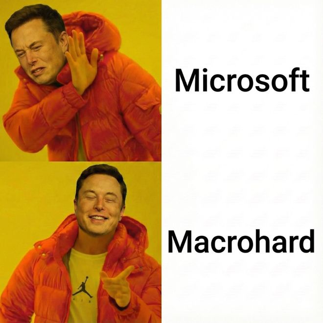 马斯克推文图中极其醒目的「MACROHARD」的字样,并非真实名字,而是xAI团队后期玩梗涂上去的,在词意上很明显是对微软「Microsoft」的一种调侃(挑战)。
