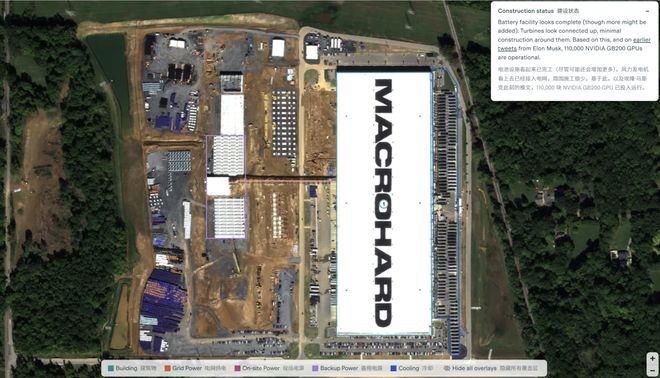 推文中,马斯克还转发了位于美国田纳西州孟菲斯(Memphis)的一张xAI超算中心Colossus(巨像)的卫星航拍图。